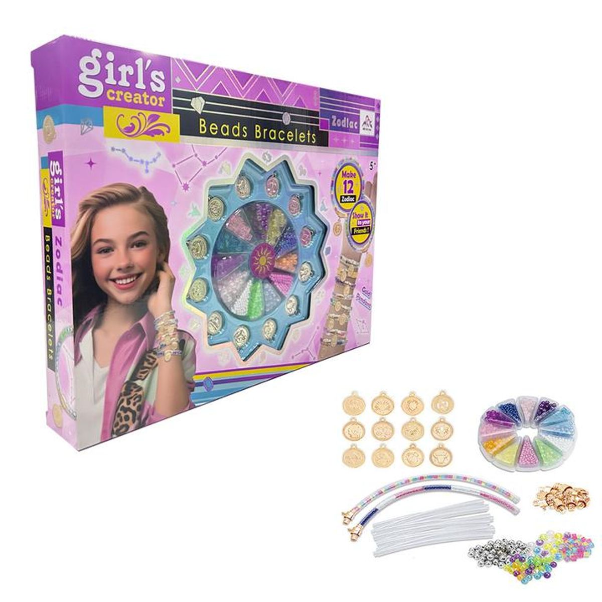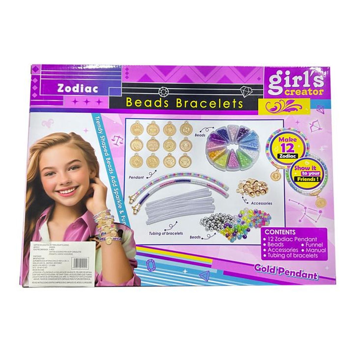 Incluye: Cuentas de colores, dijes metálicos y accesorios